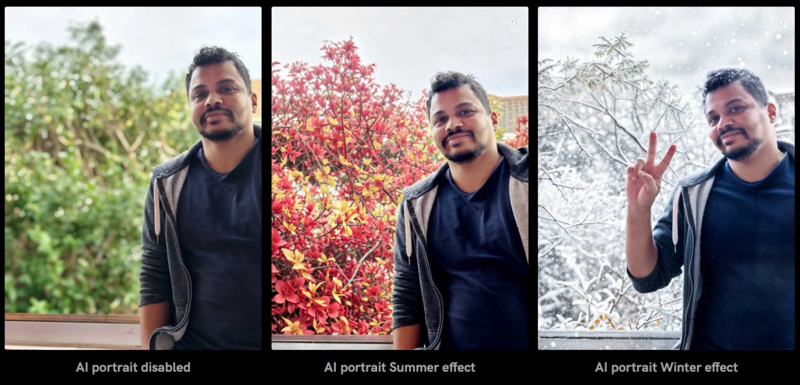 However, using AI to process selfies is nothing new, as Vivo itself has used this feature on smartphones before. An example in the image below is the ability to change the season or background of the image. This type of processing will be handled by Vivo's servers, not on the device itself.