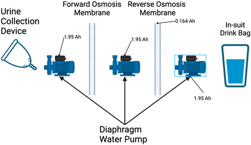 The design used uses clothes with maximum absorbency. It is like several layers of diapers stacked on top of each other. This can cause discomfort when inserted and a chance of urinary tract infection. But the new design will be modified to be a cup to collect urine. Moving on to the filtration system, the water is then electrolyzed and transferred to the drinking water bag in the suit.