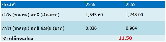The company announced operating results for the year 2023, with a net profit of 1,545.60 million baht, a decrease of 11% compared to the same period last year, with a net profit of 1,748.10 million baht.