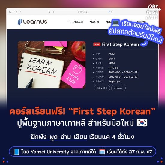 it is a great day! Anyeong-An welcomes the new year. Who cares about Callan P'Jung these days, would you like to learn some Korean? today Next one category #Life is addicted to learning. Come and open a Warp course to study for free. “The First Step in the Korean Language” (The First Step in the Korean Language) Direct from Yonsei University Best Universities from South Korea It is open to anyone to easily engage in self-study on their own.