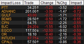 Tertsak Tavitram Mr Deputy Managing Director, Research Division Asia Plus Securities Thailand's stock market fell today due to pressure from MSCI Rebalance, which adjusted entry and exit of stocks. This has affected major stocks in volatility. And this is pressure on the big stocks that have been removed from the index calculation, especially the 3 biggest stocks that have been removed from the MSCI Global Standard – BJC, OSP, BANPU.