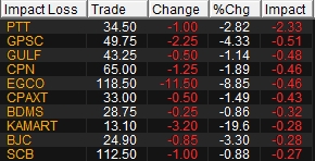 Stock Trading The market closed this morning at 1,376.14 points, down 5.91 points (-0.43%), with a trading value of about 26,738 million baht.